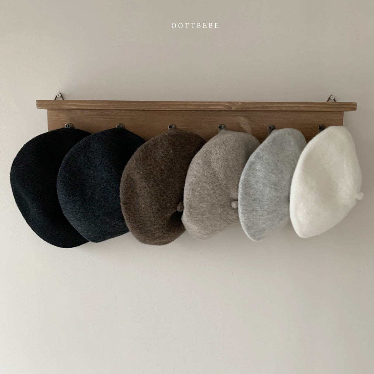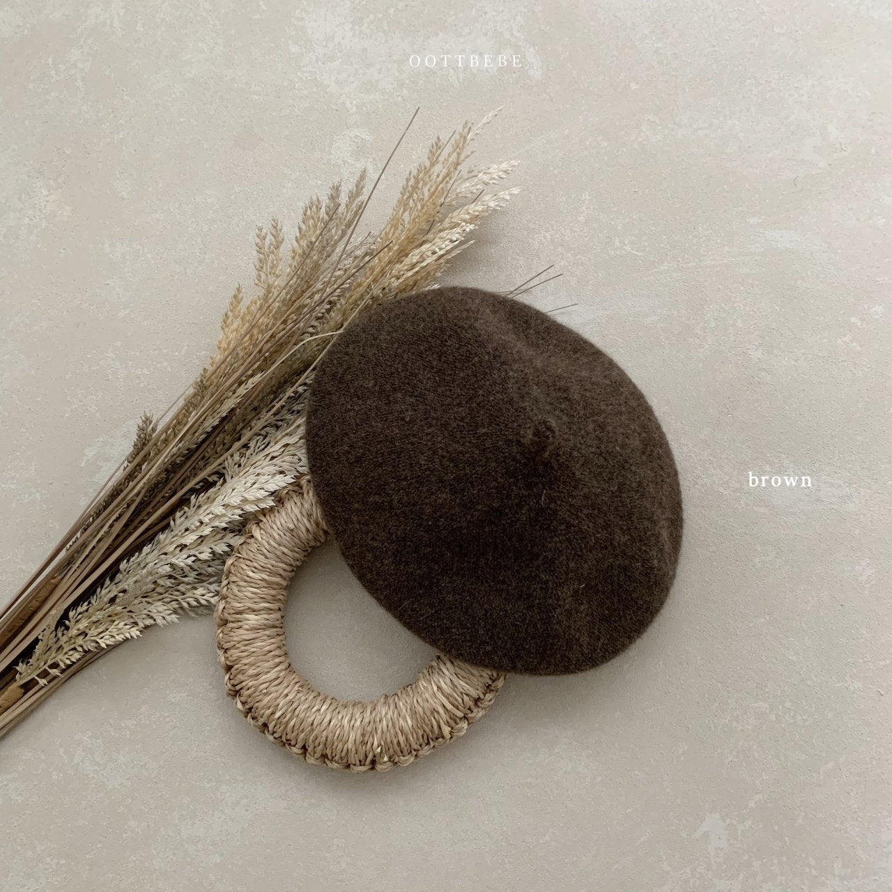 ニット性のベビー向けベレー帽。柔らかい手触りと使いやすいカラーリングで、どんなコーデにもプラスしやすい、1枚は持っておきたいアイテム。